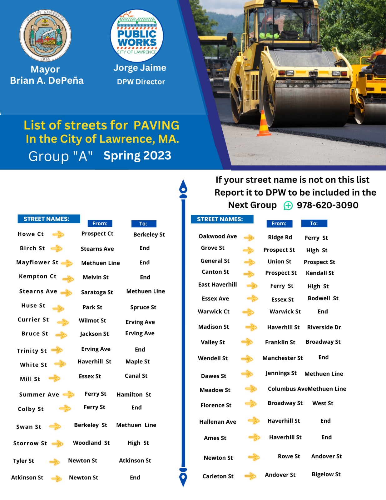 List of streets for PAVING